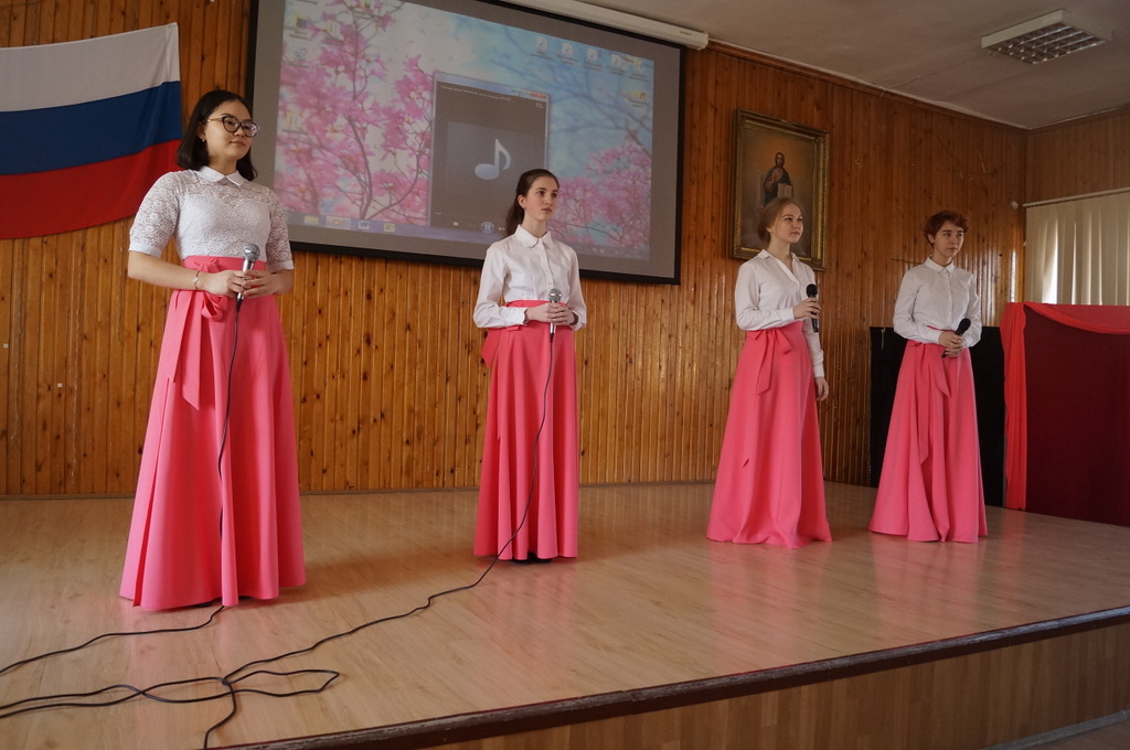 После посещения кафедрального собора состоялась встреча с воспитанницами Православной женской гимназии в честь Рождества Пресвятой Богородицы. Сначала гостеприимные хозяева показали свое певческое искусство, а затем была непринужденная беседа о том, что более всего волнует современную православную молодежь.